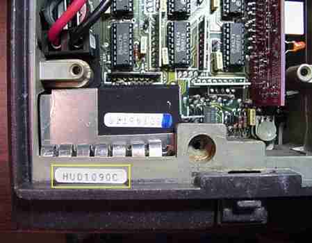 The Unified Chassis Number is typically printed on a small white label stuck on the bottom of the radio's chassis (photo). Occasionally this number will be stamped in black ink on the edge of the radio's chassis instead of being on a white label (photo). To locate this label remove the mounting tray, turn the radio over and look on the bottom near the J1 connector. Often the label is obscured by the radio's bottom cover (held on by 4 screws) and this cover must be removed to see it. Unfortunately these labels are missing allot of the time. If you can not locate the Unified Chassis Number label, one way to determine the radio's options, frequency coverage, etc., is to get the manual out, open up the radio and lookup the appropriate subassembly numbers for the radio's internal parts. Another way is the top lid that opens via the pushbutton located under the handle, has the radio factory programming label that may help decipher the frequency range and squelch options (option W12 indicates a VHF or UHF receiver preamp). Make sure the serial number on the radio matches the one printed on the label before using the label information.