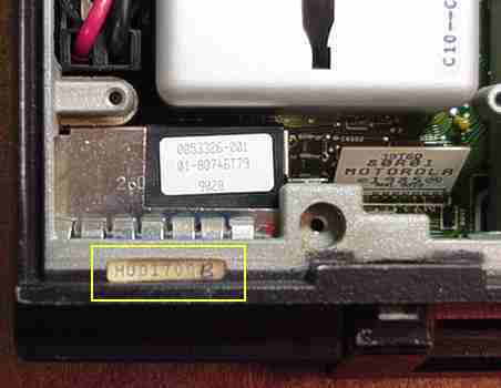 The Unified Chassis Number is typically printed on a small white label stuck on the bottom of the radio's chassis (photo). Occasionally this number will be stamped in black ink on the edge of the radio's chassis instead of being on a white label. To locate this label remove the mounting tray, turn the radio over and look on the bottom near the J1 connector. Often the label is obscured by the radio's bottom cover (held on by 4 screws) and this cover must be removed to see it. Unfortunately these labels are missing allot of the time. If you can not locate the Unified Chassis Number label, one way to determine the radio's options, frequency coverage, etc., is to get the manual out, open up the radio and lookup the appropriate subassembly numbers for the radio's internal parts. Another way is the top lid that opens via the pushbutton located under the handle, has the radio factory programming label that may help decipher the frequency range and squelch options (option W12 indicates a VHF or UHF receiver preamp). Make sure the serial number on the radio matches the one printed on the label before using the label information.
