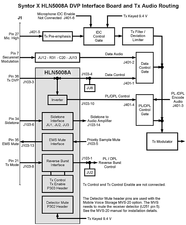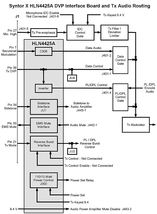 Syntor X: The J401 Common Circuits Board Connector pin out and J103 Optional HLN5008A Interface Board Connector pin out was added. The Dual Radio Syntor X information was added to the HHCH section. A clarification about the HHCH was added to the Personality Board section.